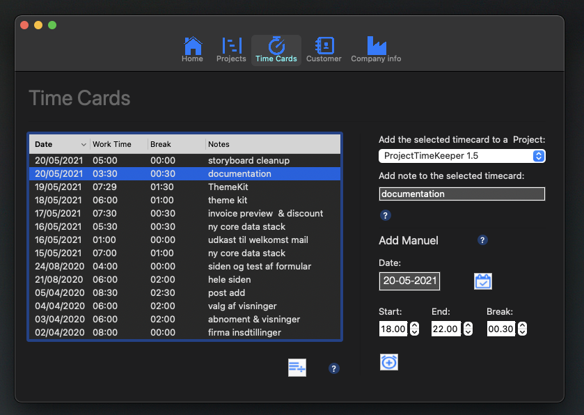 ProjectTimeKeeper is macOS applications, to help you keep track on time spend on your projects.